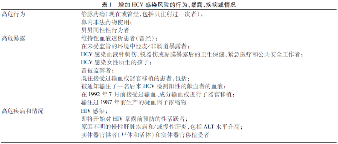 学术进展 Academic 学术进展 病毒性肝炎 酒精性肝病 非酒精性脂肪性肝病 药物性肝损伤 其他 学术进展 病毒性肝炎 酒精性肝病 非酒精性脂肪性肝病 药物性肝损伤 其他 重肝首页 > 学术进展 > 其他 > 2019年AASLD/IDSA指南:HCV感染的检测、管理和治疗建议(更新版) 美国肝病学会(AASLD)和美国感染病学会(IDSA)于2013年启动了HCV指南项目,通过HCV指南网站(www.HCVGuidelines.org)发布最新的、经同行评议的、无偏移的、基于证据的推荐意见,以帮助临床医生就HCV感染的检测、管理和治疗做出决策。HCV指南的重要更新于2019年11月在网上发布,该更新总结并强调了自2018年10月上一版指南发布以来关键的新建议或修正建议。作者对此次更新的推荐意见和重要内容进行了翻译,供业内同行参考。 安全、耐受性良好、高效(治愈率>95%)的直接抗病毒药物(DAA)的出现,开创了一个使消除丙型肝炎成为可能的新时代。2016年,世界卫生组织(WHO)提出了2030年消除丙型肝炎作为公共卫生威胁的全球卫生部门战略,并制定了促进这一目标的行动计划。该计划的关键要素包括提高未诊断病例的检测,增加新诊断患者联系和获得护理的机会,以及扩大治疗的机会。 HCV指南最新更新中包含的和本文强调的许多推荐意见匹配,并支持了WHO从控制转变为最终消除丙型肝炎的战略。 HCV指南通过对现有数据(包括在学术会议上提出的和在经同行评议期刊上刊登的信息)基于证据的回顾而制定和更新。基于科学依据和专家意见,本指南推荐意见的证据级别(Ⅰ,Ⅱ,Ⅲ)和推荐强度(A,B,C)按照推荐意见分级评估和制定及评价(GRADE)系统进行分级。 1 普遍性及基于风险的丙型肝炎筛查和随访 1.1 成人丙型肝炎的一次性、普遍性筛查 推荐意见1:推荐所有18岁或以上个体进行一次性、常规的、选择性的HCV筛查。(Ⅰ,B) 1.2 基于风险的HCV检测 推荐意见2:推荐所有存在增加HCV感染风险的行为、暴露、疾病或情况(表1)的18岁以下个体进行一次性HCV检测。(Ⅰ,B) 推荐意见3:推荐所有存在增加HCV感染风险的行为、暴露、疾病或情况(表1)的个体定期重复HCV检测。(Ⅱa,C) 推荐意见4:推荐所有静脉药瘾者和感染HIV的男男同性性行为者每年进行HCV检测。(Ⅱa,C) 1.3 HCV的初始检测(图1)和随访 推荐意见5:推荐采用抗-HCV检测和HCV RNA PCR检测进行HCV初始筛查。(Ⅰ,A) 推荐意见6:对过去6个月内发生过HCV暴露、抗-HCV检测阴性者,推荐在HCV暴露6个月或更长时间后进行HCV RNA检测或定期复查抗-HCV检测。免疫缺陷者也可考虑进行HCV RNA检测。(Ⅰ,C) 推荐意见7:对既往病毒自发清除或治疗后清除、存在再感染风险者,推荐进行HCV RNA检测,因为抗-HCV检测通常呈阳性。(Ⅰ,C) 推荐意见8:抗-HCV检测阳性、HCV RNA PCR检测阴性者,应被告知其没有现症(活动性)HCV感染的证据,但不能避免再感染。(Ⅰ,A) 推荐意见9:推荐开始抗病毒治疗前进行HCV RNA定量检测,以记录基线病毒血症水平(基线病毒载量)。(Ⅰ,A) 推荐意见10:对治疗建议可能因HCV基因型而改变者,可考虑进行HCV基因型检测。(Ⅰ,A) 1.4 活动性HCV感染者的咨询和临床护理 推荐意见11:现症HCV感染者应接受旨在减缓肝脏疾病进展和预防HCV传播的教育和干预措施。(Ⅱa,B) 推荐意见12:应建议所有HCV感染者戒酒,并在合适时采取干预措施帮助其停止饮酒。(Ⅱa,B) 推荐意见13:应向所有HCV感染者提供关于如何预防HCV向他人传播的教育(表2)。(Ⅰ,C) 推荐意见14:推荐所有HCV感染者采用无创标志物(表3)(或肝活检,如果需要)评估进展期肝纤维化,以帮助制订恰当的HCV治疗策略,并确定是否需开始针对肝硬化的管理措施(如肝细胞癌的筛查)。(Ⅰ,A) 推荐意见15:推荐所有活动性HCV感染者对其他可能加速肝纤维化的疾病进行评估,包括HBV和HIV感染。(Ⅱb,B) 推荐意见16:推荐所有HCV感染者中的易感人群接种甲型肝炎和乙型肝炎疫苗。(Ⅱa,C) 推荐意见17:推荐所有肝硬化患者接种肺炎球菌疫苗。(Ⅱa,C) 2 成人慢性丙型肝炎的普遍性治疗和简化治疗方案 2.1 成人HCV感染者的普遍性治疗 推荐意见18:推荐所有急性或慢性HCV感染的成人进行抗病毒治疗,除了预期寿命过短而无法进行HCV治疗、肝移植或其他直接治疗的患者。(Ⅰ,A) 2.2 无肝硬化或代偿期肝硬化初治成人患者的简化HCV治疗方案 2.2.1 无肝硬化初治成人患者的简化HCV治疗方案(图2) 见PDF原文 2.2.2 代偿期肝硬化初治成人患者的简化HCV治疗方案(图3) 见PDF原文 3 儿童和青少年HCV感染 3.1 围产期暴露儿童和HCV感染儿童兄弟姐妹的检测 推荐意见19:推荐所有急性或慢性丙型肝炎孕妇所生的孩子进行HCV感染的检测。推荐在18个月时或18个月以后进行抗体检测。(Ⅰ,A) 推荐意见20:可以考虑在出生后第1年进行HCV RNA检测,但该检测的最佳时机尚不清楚。(Ⅱa,C) 推荐意见21:可以考虑最早2个月时进行HCV RNA检测。(Ⅱa,B) 推荐意见22:不推荐在18个月以前重复进行HCV RNA检测。(Ⅲ,A) 推荐意见23:18个月以后抗-HCV检测阳性的儿童应在3岁后进行HCV RNA检测,以确定慢性丙型肝炎感染。(Ⅰ,A) 推荐意见24:通过垂直传播感染慢性丙型肝炎的儿童,其同母所生的兄弟姐妹应进行HCV感染的检测。(Ⅰ,C) 3.2 父母及儿童关于HCV传播和预防的咨询 推荐意见25:应告知父母,丙型肝炎不通过日常接触传播,因此,HCV感染儿童不会对其他儿童构成危险,可以上学、参加运动和体育活动,并不受限制地进行所有其他常规儿童活动。(Ⅰ,B) 推荐意见26:应告知父