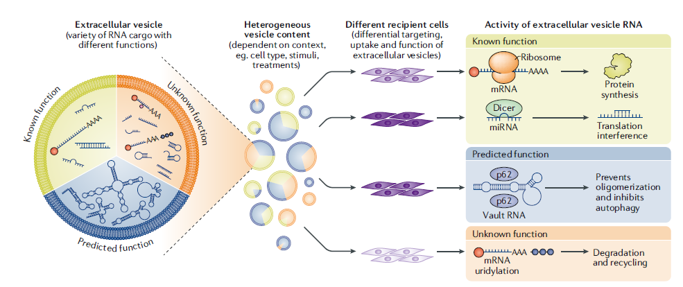 文献来源:O'Brien K, Breyne K, Ughetto S, Laurent LC, Breakefield XO. RNA delivery by extracellular vesicles in mammalian cells and its applications [published online ahead of print, 2020 May 26]. Nat Rev Mol Cell Biol. 2020;1‐22.(IF=43.351)